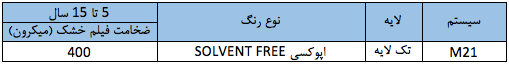 سیستم | لایه | نوع رنگ | تا 5 سال | 5 تا 15 سال | بیش از 15 سال |